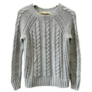 GAP Cable Knit Sweater Cotton Crewneck Fisherman Pullover Grey Size Small