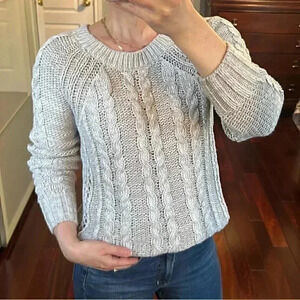 GAP Light Grey Heather Raglan Sleeve Cable Knit Pullover Fisherman Sweater