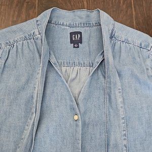 GAP Chambray Denim Tie Neck Blouse Button up shirt, Medium