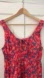 Charming dress with coral and teal floral pattern. Sleeveless design for a fresh look.