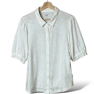 GAP Cotton Modal Blend Button Front Puff Sleeves Ivory White US Sz L