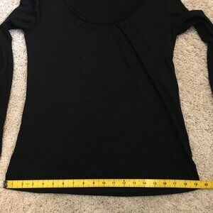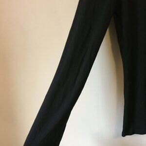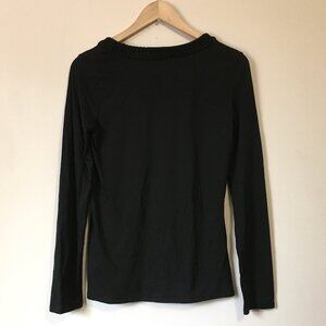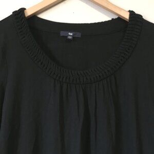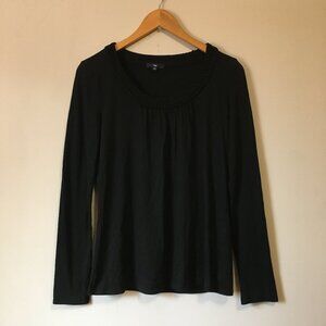 Very good preowned condition, solid black, long sleeve top with ruched collar by GAP. Natural, lightweight and environmentally friendly.