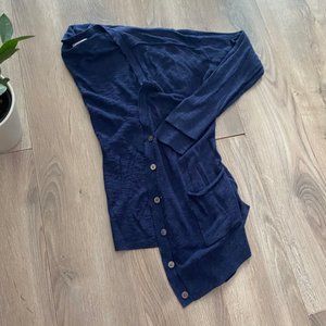 GAP navy cropped long-sleeve thin-knit cardigan with buttons and pockets. In great condition (only worn a couple of times)! Great for work or casual wear. Excellent closet staple & great for spring!