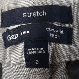 These stretch cropped pants are called curvy fit Capri in size 2. They are a great Shade of Grey, have some wonderful stretch to them and are in good condition.