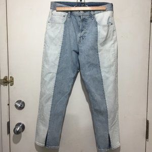 Gap Denim Cropped Pants, Size 28, 98% Cotton, 2% Spandex, Two-Tone Blue Wash, Side Pockets, Front Small Splits, Back Pockets, Closure Buttons, in Good Condition, Nice Fitt.