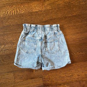GAP denim Girls size 8, acid wash denim shorts. High rise waist. Cuffed legs. Relaxed fit. Pockets in the front and back. Button and zipper. 99% cotton, 1% Spandex. Machine Wash. Very good condition.