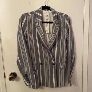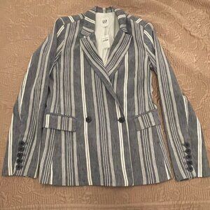 GAP Double Breasted Linen Blend Striped Classic Girlfriend Blazer NWT