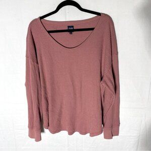 GAP Dusty Rose Waffle Knit Oversized Scoop Neck Long Sleeve Top XL