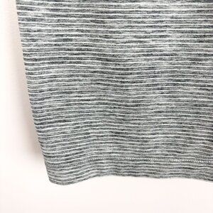 This is a breathable and stretchy workout tank top perfect for yoga, running, or any activewear needs. It features a racerback design and a slim fit with a soft heather grey stripe pattern.