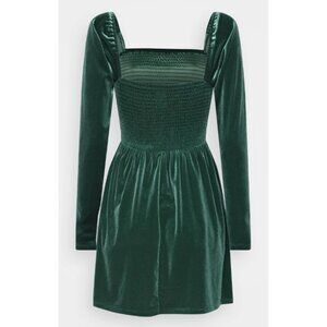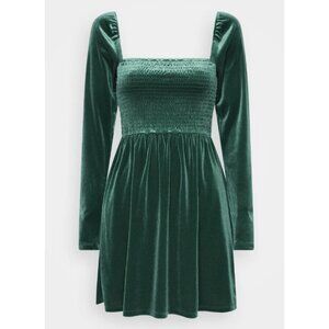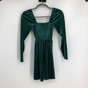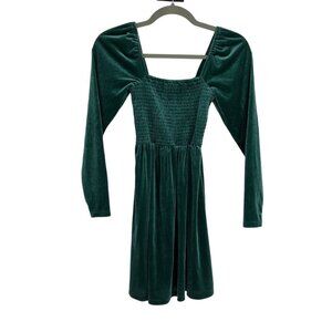 GAP Forest Green Smocked Velvet Long Sleeve Mini Dress Size XSP