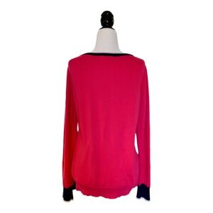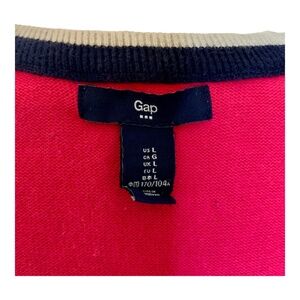 Like new fuchsia sweater with navy/white strips on the collar and cuffs from the GAP. Women’s sweater in size large and 100% cotton. Preppy and perfect for Spring!