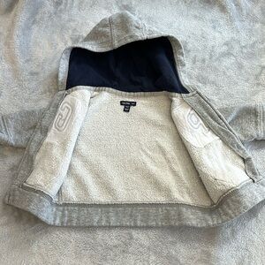 GAP - Full zip Sherpa line hoodie jacket. Size 3-6 months