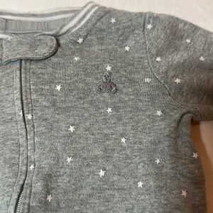 Soft gray footie with star pattern. Cozy and stylish for little ones.