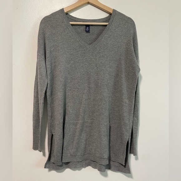 GAP Gray V-Neck Long Sleeve Sweater with Front Pockets Size XS/S