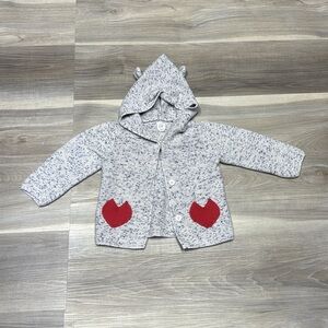 🏴 GAP Gray knitted Cardigan with Red Heart Pockets size 18-24 months
