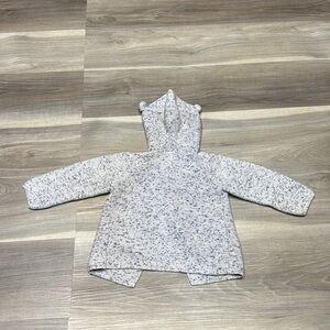 Adorable hooded cardigan in speckled gray knit. Features cute red heart-shaped pockets. Long sleeves with zip front closure. Sweet bear ear details on hood.