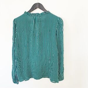 GAP Green White Vertical Striped Ruffle VNeckline Long Sleeve Blouse