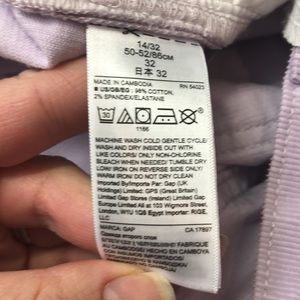 GAP High Rise Cigarette Lilac Corduroy Cropped Jeans, size 14
