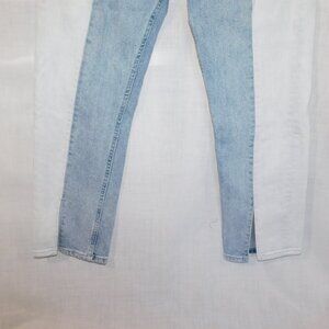 This hard to find Pair of Womens 25 The Gap high Rise straight Crop Tonal Spliced Color Block Button Fly Jeans are in great clean condition.. Jeans are 98% Cotton - 2% Spandex. - Machine washable. Features classic 5 pocket design. 5" Slit on on front cuff.