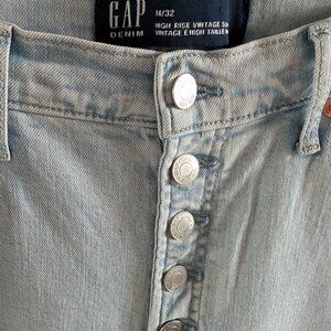 Gap Jeans, Gap Denim, High Rise, High Waisted, Haigh Waist, Size 32, Size 14, Vintage Slim, Slim Fit, Light Wash, Light Blue, Faded Blue, Naples Wash, Button Fly,