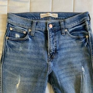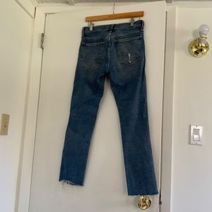 These jeans are a size 28 however they run small so I listed them as size 26. The are 98% cotton and the fabric is thicker and very sturdy. Clean and barely worn.
