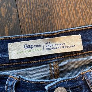 GAP True Skinny Jeans with ripped knees and other distressing per photos.