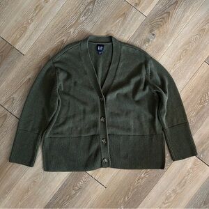 GAP Khaki Green 24/7 Split-Hem Cotton Oversized Cardigan Sweater