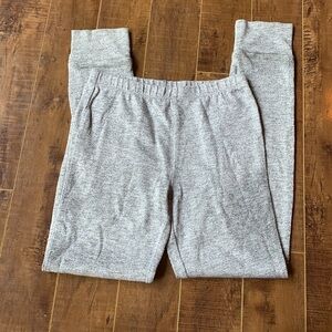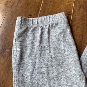 Lightweight knitted jogger style bottoms. Light heather grey in colour, elastic waist and cuffed bottoms.