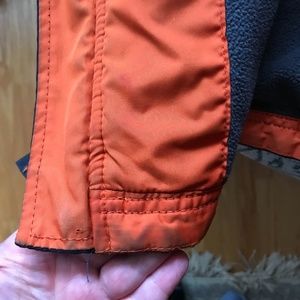 Size small (age 6-7 on GAP Kids sizing chart) spring/fall fleece lined jacket by GAP Kids. Navy blue with orange details. Very good condition, worn for one season. clean and laundered. Smoke free home. Please note there is a small amount of discolouration on the inside of the bottom hem (pictured), not at all noticeable when wearing as its on the interior of the jacket. Hood for colder days. Dark grey colour fleece lining. Zipper front. Open to reasonable offers ☺️