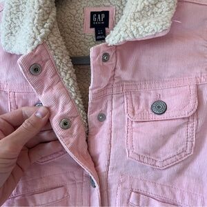 GAP Kids Pink Corduroy Sherpa Lined Jacket Size S (6–7) – Faux Shearling Collar