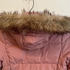GAP Kids Pink Puffer Jacket with Faux Fur Hood