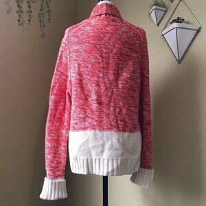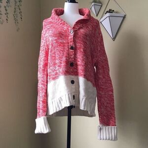 Stay cozy and warm with this red and white sweater with large buttons to close it up. No pulls or flaws, excellent used condition.