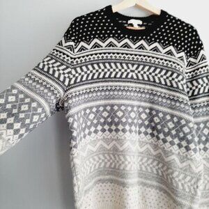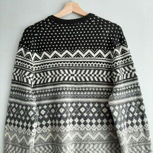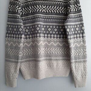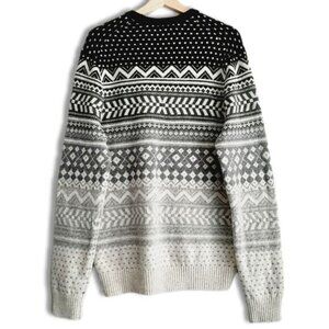 GAP Lamb Wool Blend Nordic Ombre Fair Isle Sweater Knit Gray & White Sz L