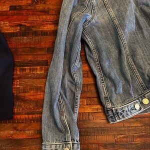 Classic light blue denim jacket. Features button closure. Ideal for everyday style. Gently used. In great condition