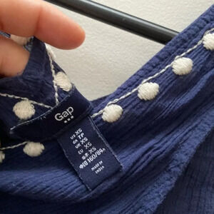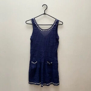 Perfect as a beach cover up, but sadly no longe fits me. Worn a couple of times but EUC. Wrinkly fabric, with hand stitched details and two front pockets. V-back, and can we work two ways. This dress/coverup is sheer but could work as a dress with a slip.