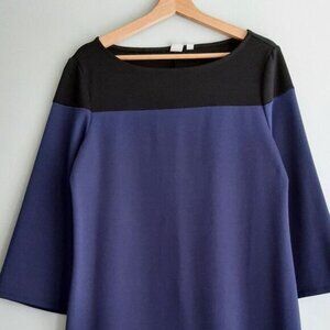 GAP | Long Sleeve Colorblock Shift Dress Knee Length Pull Over Black & Blue Sz M