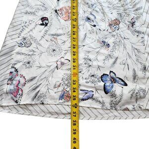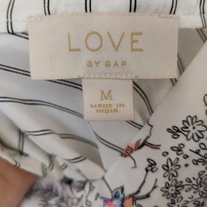 This beautiful GAP Love Slip Dress in size M is a perfect addition to any wardrobe. It features a unique floral and striped design in white with blue and orange accents. The dress is lightweight, flowy, and made of 100% polyester, ensuring comfort and style. Designed with adjustable spaghetti straps for a customizable fit, it's great for summer, vacations, or casual outings.