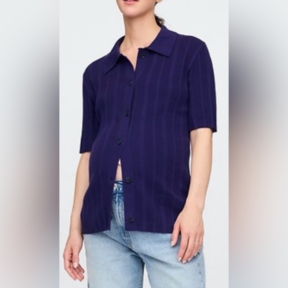 GAP Maternity Ribbed Button Front Polo Shirt, Twilight Navy, sz S