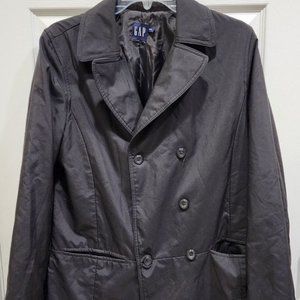 GAP Men's Black Double-Breasted Trench Coat Size M Polyester Lightweight Jacket