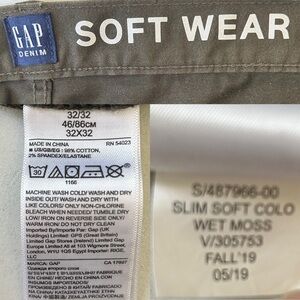 GAP Men's Soft Wear Slim Fit Denim Pants Dark Moss Khaki Green Size 32