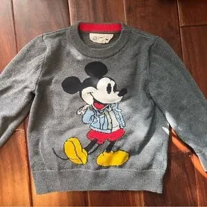 Stylish gray sweater with a bold red collar. Ideal for toddlers. Popular Mickey Mouse sweater sold out everywhere online and in stores. Can be unisex for boys and girls.