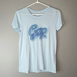 Ladies baby blue Gap Retro Graphic Logo Crewneck Favourite T short sleeve T-Shirt.