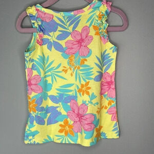 Girls yellow mix Baby Gap NWT Tropical Floral Print Ruffle Strap Crewneck Tank.