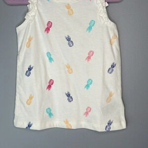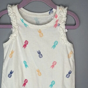 Girls white with coloured pineapple graphic print Baby Gap Ruffled Strap Crewneck Tank Top.