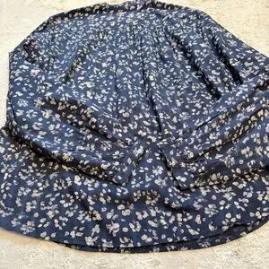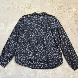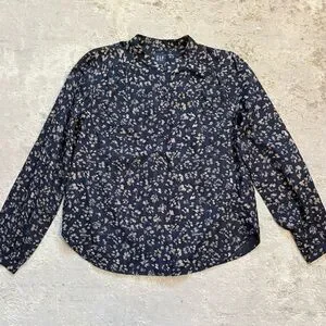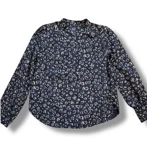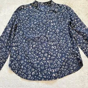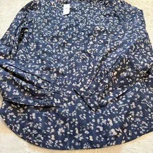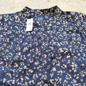 GAP Navy Blue Abstract Floral 1/2 Button Down Blouse Size Medium New With Tags. 100% cotton long sleeve blouse brand new with tags. Four button half button front. Nehru collar with gathered yolk. Single button cuffs.