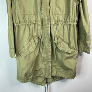 GAP Olive Green Canvas Long Field Utility Jacket Drawstring Zip Snap Army S