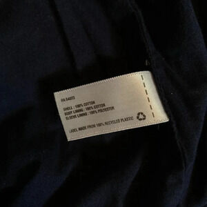 Size Small, petite but still too big on me so I only wore it a handful of times. Ties and adjustments to the waist and hood make this a great versatile spring or fall jacket. Would easily fit a chunky knit underneath.