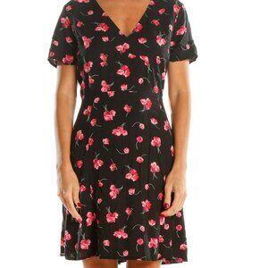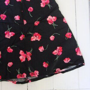 The perfect day to night summer dress! Bright pink floral on a black base. Make it casual with a pair of sneakers and some sunglasses OR dress it up with a pair of heels and dangly earrings.