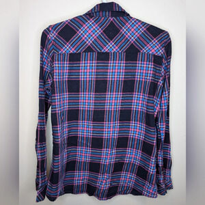 GAP Pink Blue Red White Button Down Flannel Top XS Woman