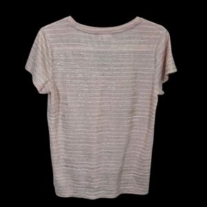 ⭐️GAP Pink Fitted Short Sleeve Tee With Gold Shimmer Linene Blend Size Small